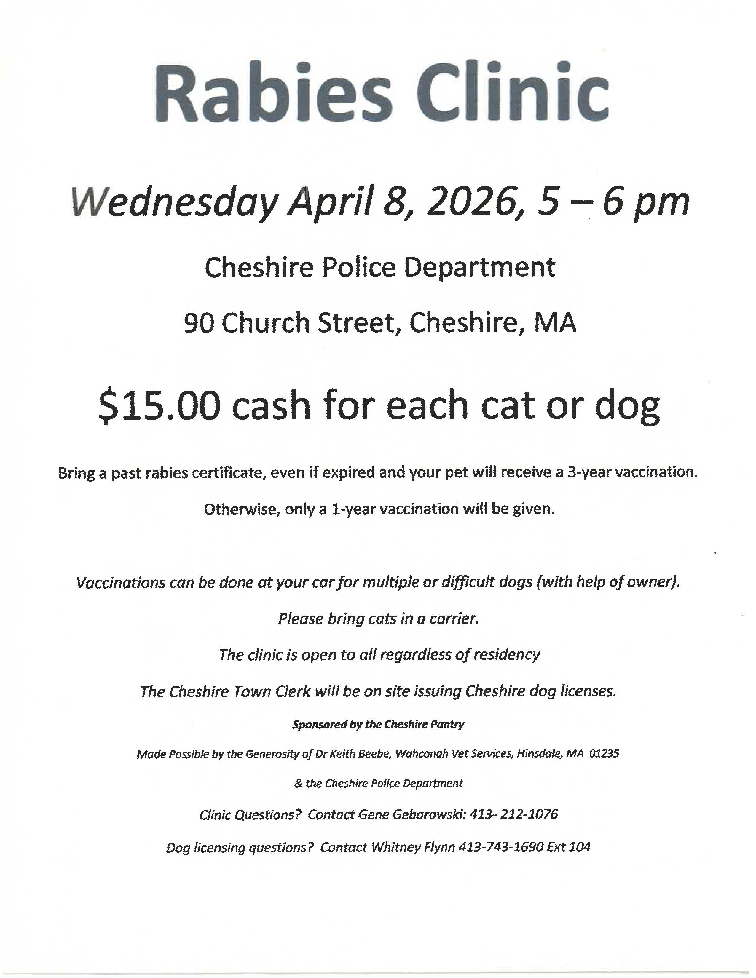 Rabies Clinic - Wednesday April 8, 20266 5-6 p.m.